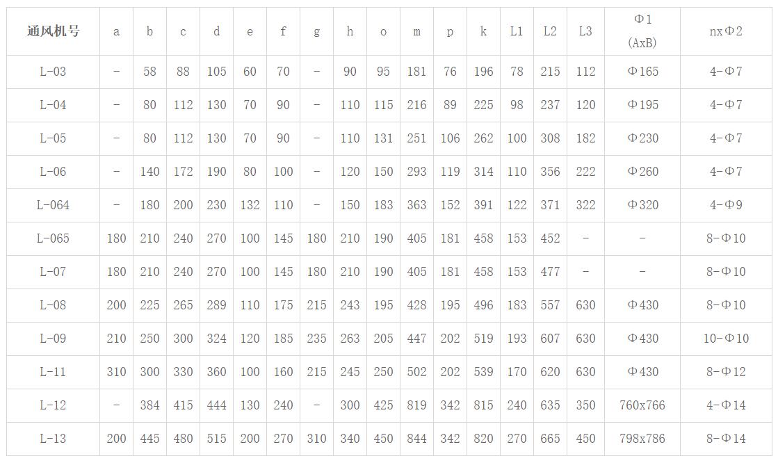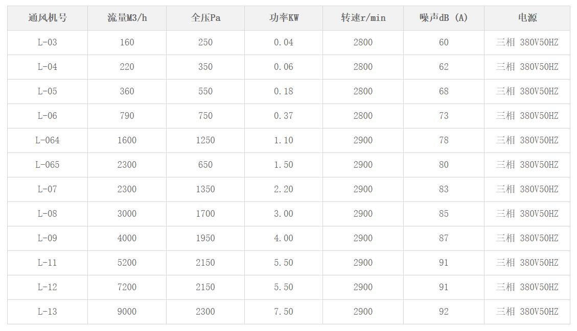 L系列離心通風機主要性能參數